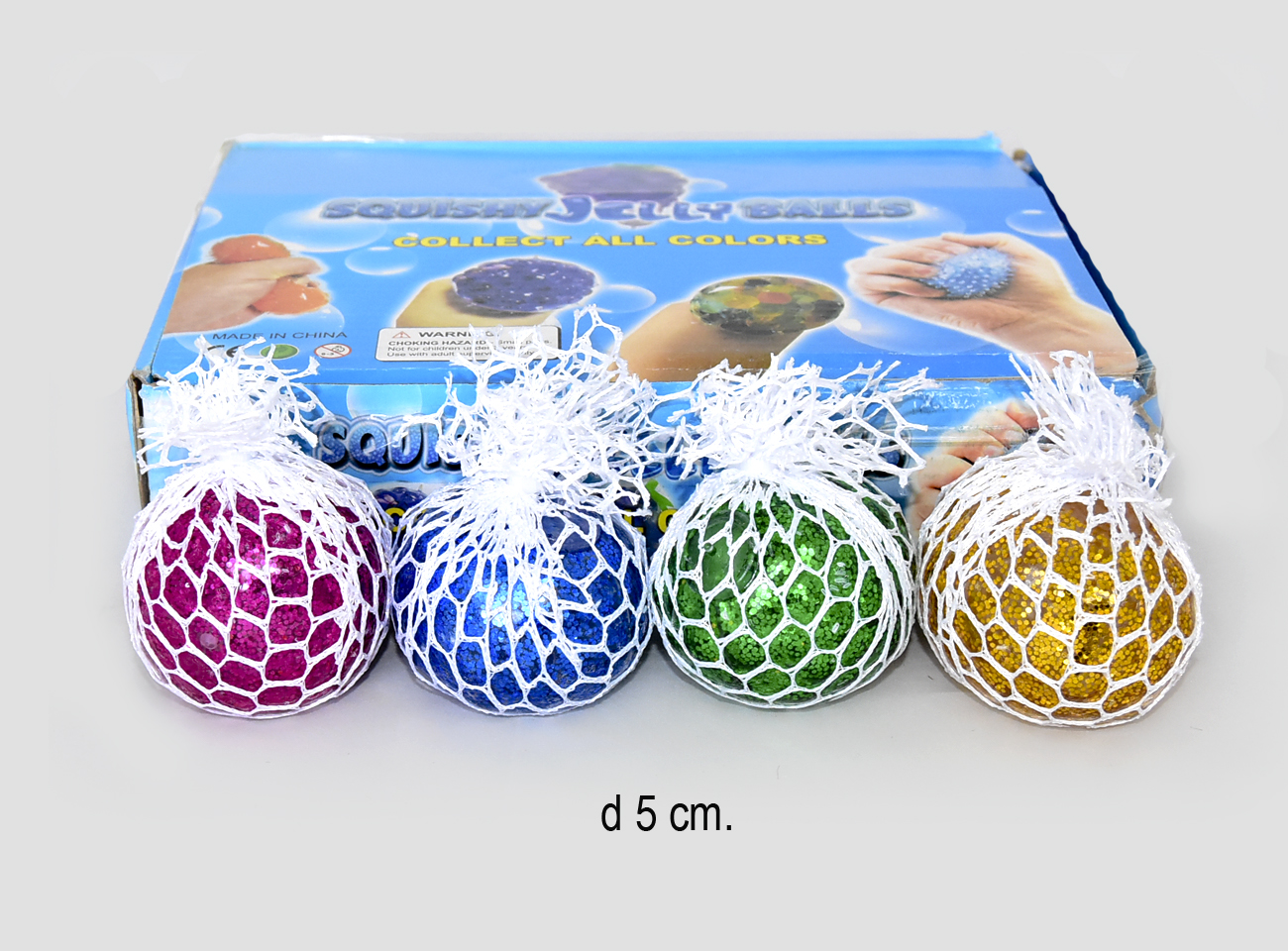 Мяч жид. арт. 148400/5973-5 Блестки в белой сетке 5 см (24 шт.) в кор.**•