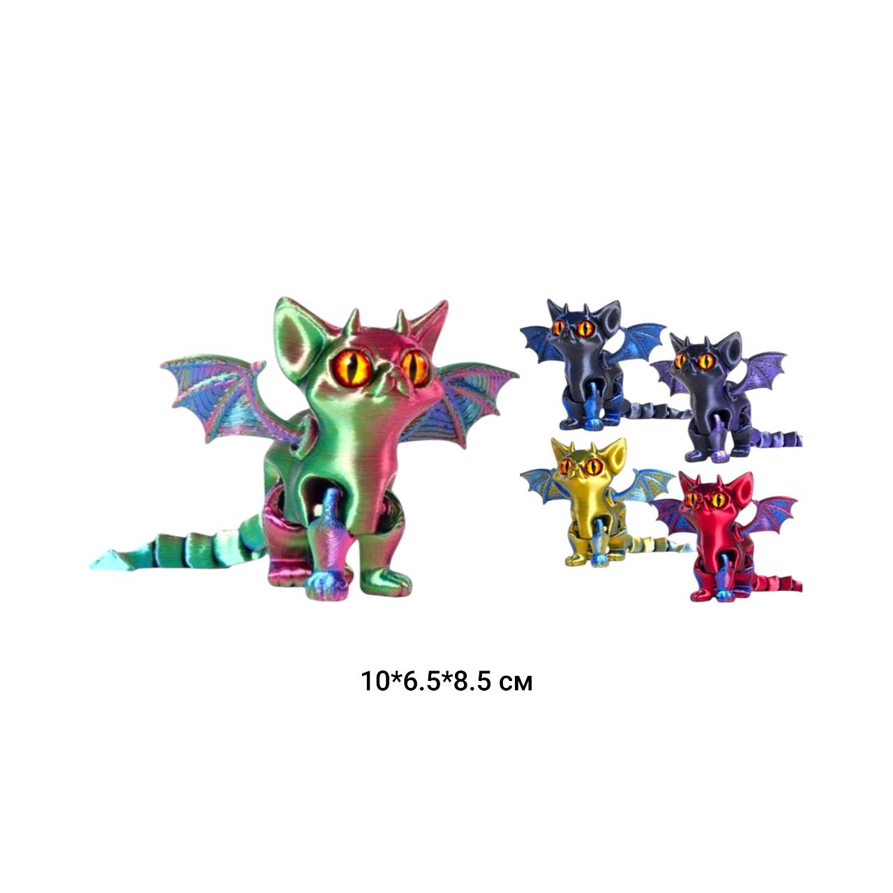 Фигурка 3Д арт. 1404-209-805 Кот-демон с крыльями и рожками перелив подвижная в пак.