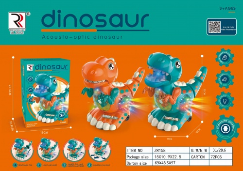 Динозавр арт. ZR158 Веселый тиранозавр на батар. звук, свет в кор. 22,5*11*15