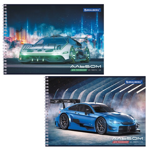 кс_Альбом для рисования арт. 106695 А4, 24 л. гребень, обложка картон BRAUBERG 195х285мм "Спорткар"Количество листов: 24