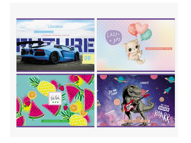 кс_Альбом для рисования арт. 107106 А4, 24л. скоба, обложка картон BRAUBERG 203х288 мм "МИКС-1"Поставляется в одном или нескольких вариантах дизайна (без возможности выбора).