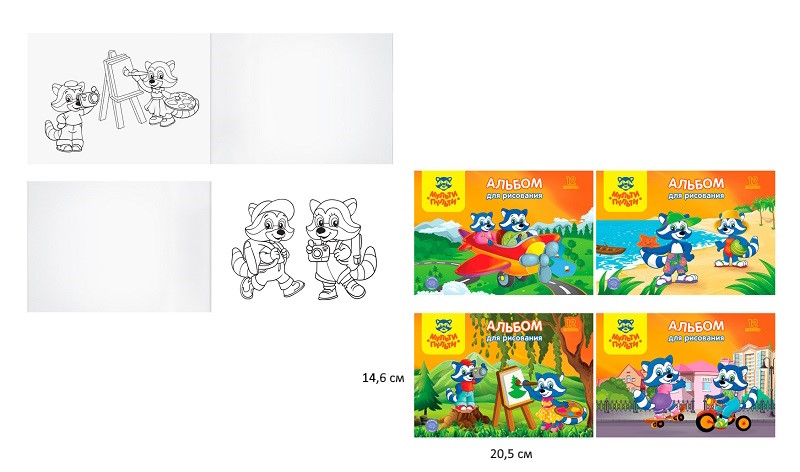 кв_Альбом для рисования арт. А12м_11603 12л. А5 на скрепкМульти-Пульти "Приключения Енота"с раскраскФормат: А5