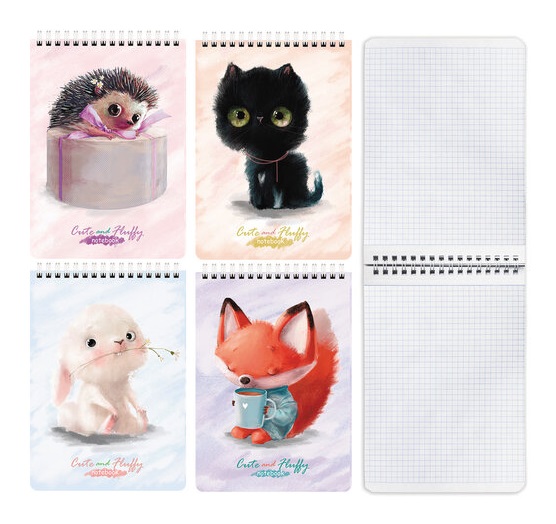кс_Блокнот арт.129831 МАЛЫЙ ФОРМАТ А6, 60л,гребень,картон,клетка,ЮНЛАНДИЯ,КОТИКИСкрепление блока: гребень (евроспираль)