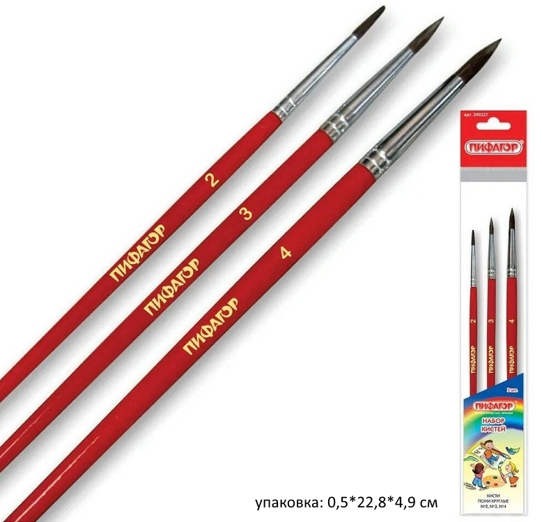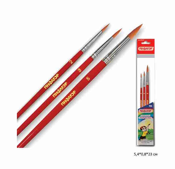 - кс_Кисти арт. 200887 ПИФАГОР, набор 5 шт. (КОЗА: круглые № 1, 2, 3, 4, 5), блистер с европодвесом×кс_Кисти арт. 200887 ПИФАГОР, набор 5 шт. (КОЗА: круглые № 1, 2, 3, 4, 5), блистер с европодвесомНабор кистей различного размера позволяет начинающим художникам решать любые творческие задачи в детском саду, школе и дома. Кисти имеют разную жесткость. Кисти из ворса козы отлично впитывают и отдают краску, хорошо держат форму, долговечны и надежны. Благодаря кистям №1, 2, 3 ребенку будет комфортно прорисовывать мелкие детали. Кисти №4 и 5 позволят делать более крупные мазки и линии. Деревянную лакированную рукоятку кисти удобно держать в руке.