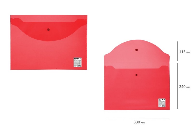 кс_Папка-конверт с кнопкой арт. 225172 STAFF А4 до 100 листов прозрачная красная 0,12 мм