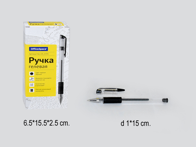 кв_Ручка гелевая "OfficeSpace" арт.GLL10_1331, черный стержень, пишущий узел 0.5мм(1/12) GLL10_1331