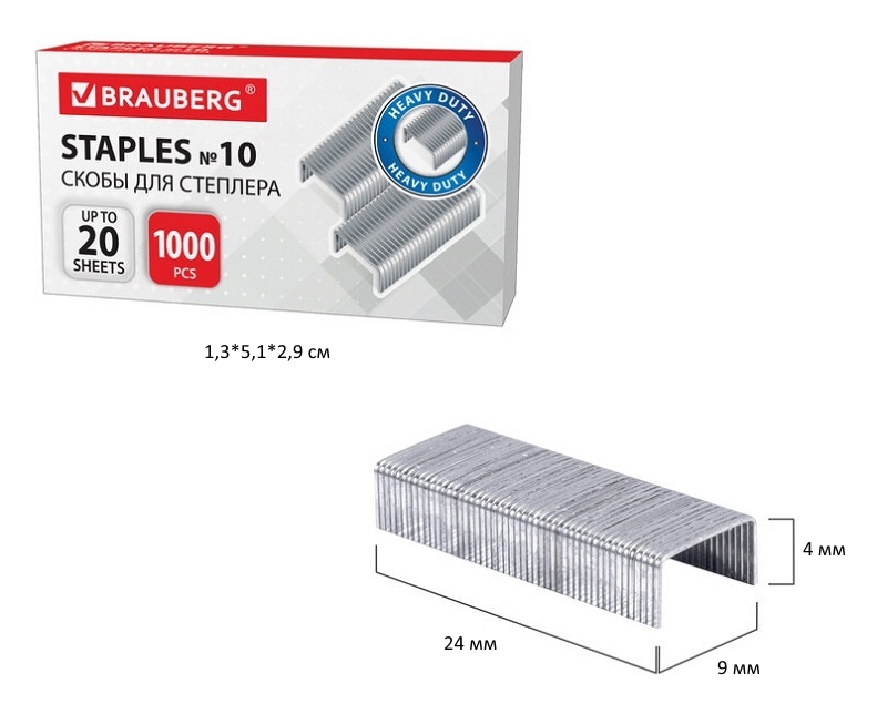 кс_Скобы для степлера №10 арт. 220949 1000 штук, BRAUBERG, до 20 листовТип и размер скоб: 10