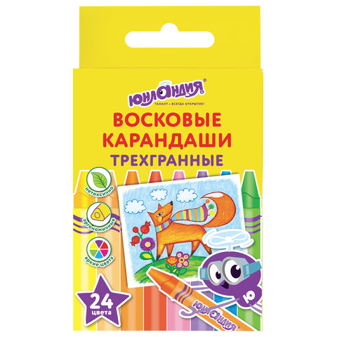 Палитра состоит из 24 ярких и насыщенных цветов. Полностью безопасны в использовании, не токсичны и не имеют резкого запаха. Благодаря своему составу карандаши пишут мягко, и ребенку не придется прикладывать усилия в процессе рисования. Трехгранная форма корпуса и диаметр 8 мм делают их удобными для тренировки руки к письму у дошкольников и детей младшего школьного возраста, формируют навык правильного захвата, снижают нагрузку на кисти рук. Каждый карандаш завернут в бумажную этикетку, что предохраняет от загрязнений, снижает скольжение, увеличивает прочность.