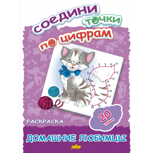 ла_Раскраска Соедини точки по цифрам (20 точек). Домашние любимцы 145х195, 16 стр.