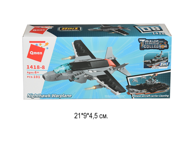 Конструктор состоит из 101 детали, из которых можно собрать военный самолет. Серия состоит из 8 разных наборов, которые можно объединить между собой и собрать огромный боевой танкер.
