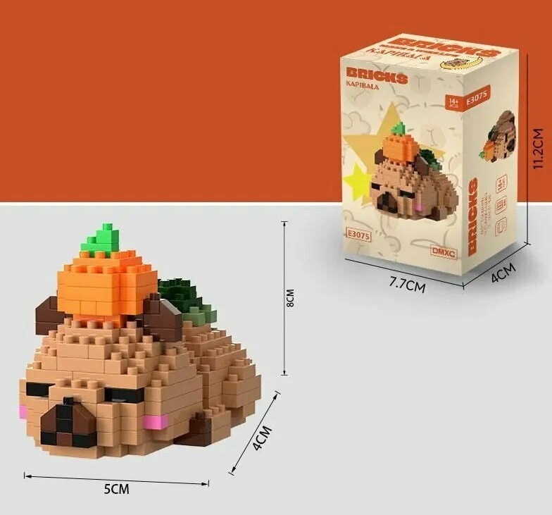 Конструктор арт. E3075-805 Микро Капибара в шапке-апельсине 208 дет. в кор.