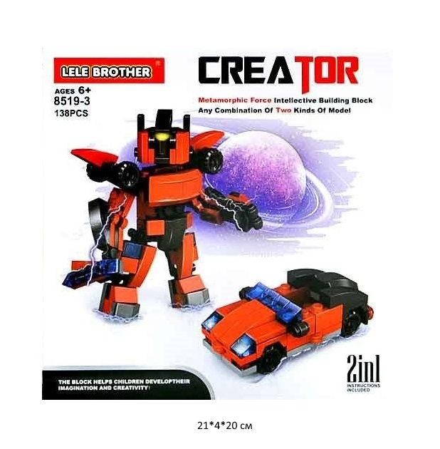 Конструктор арт. 8519-3 Трансформер Робот-автомобиль 138 дет. в кор.•
