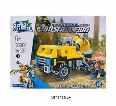 Конструктор арт. 83009-3 Трансформер-бетономешалка 90 дет. в кор.~