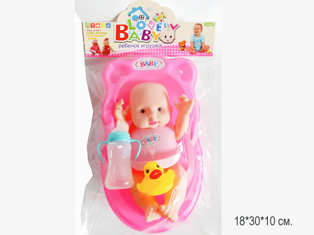 Пупс арт. 8402D-6BLD" В ванне с аксессуарами в пак. 30*18*10