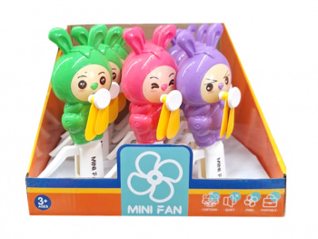 Яркий дизайн, механизм работает без батареек. Этот красочнчый аксессуар поможет малышу освежиться в жаркую погоду. Механизм очень прост: при вращении ручки дуют потоки воздуха. Вентилятор совсем небольшой и подходит для маленьких детских ручек.