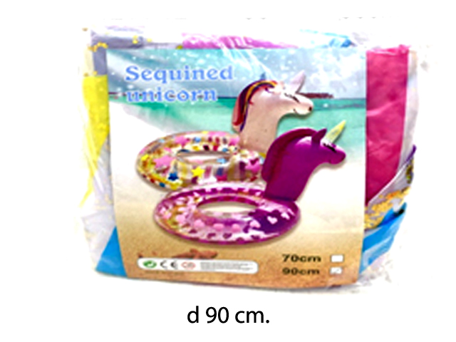 Надувной круг арт. 1214-12 Единорог цвета микс d 90 см в пак._/90 шт./