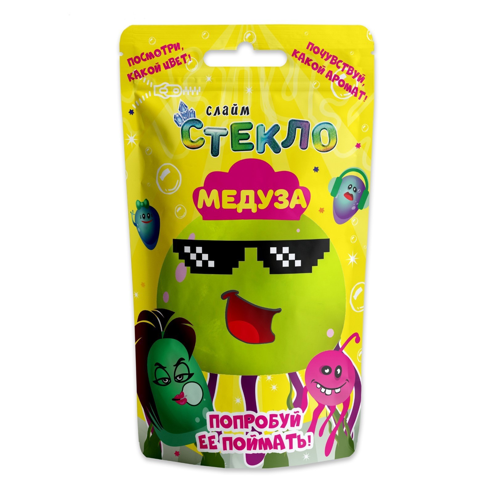 Слайм Стекло "Медуза", желтый неон 150 гр