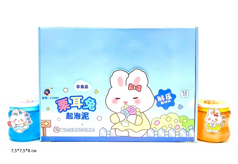Лизун арт. LY-2067 Зайка цвета микс перламутр фигурн. банка (12 шт.) шоубокс_