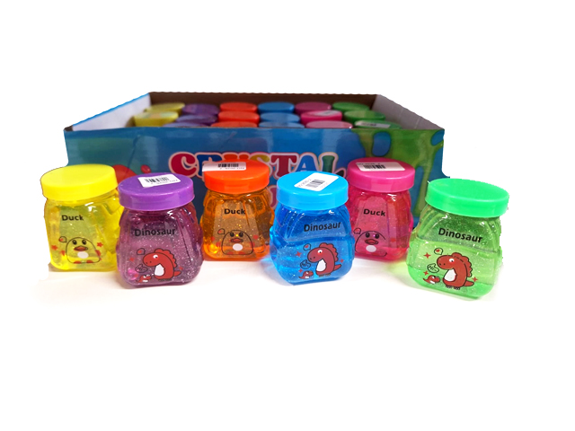 Лизун арт. 2025-2/02020 Банка Дино-Утка с блестками (24 шт.) шоубокс=