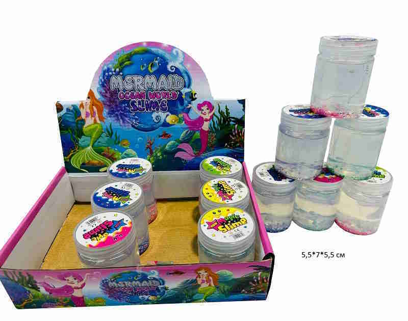 Лизун арт. 019-3 Русалка бесцветный с бусинами круглая банка (12 шт.) в кор.•