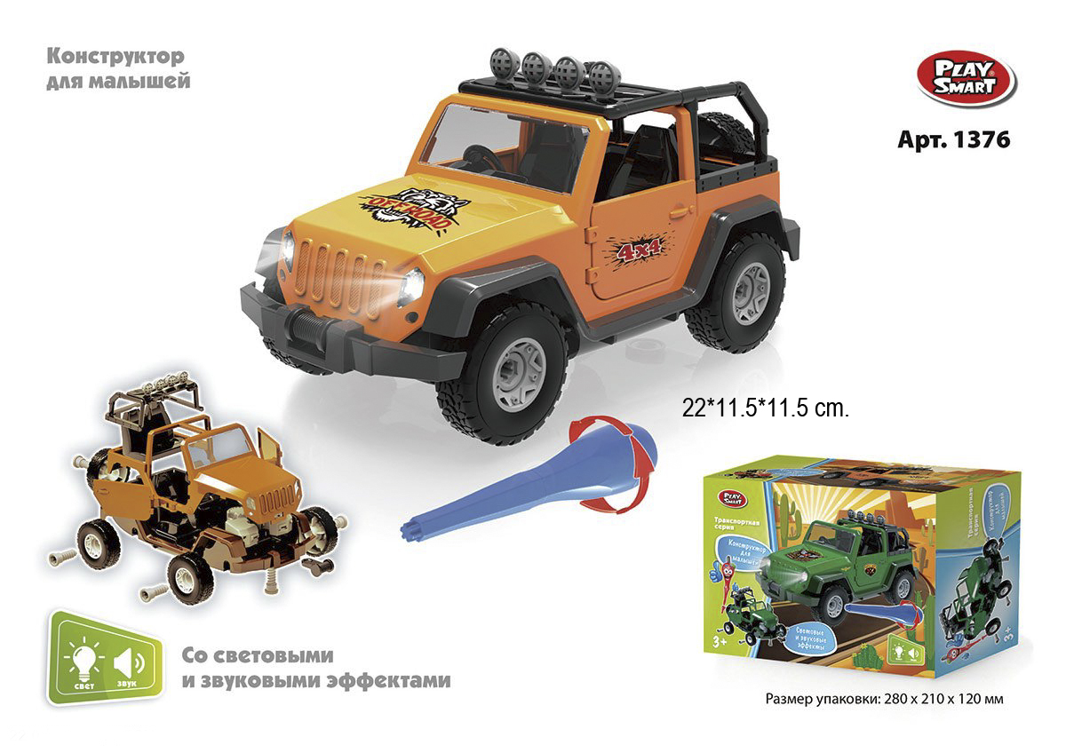 Машина констр. арт.1376" Джип свет, звук в коробке /48шт.//бл./В увлекательном процессе игры ребенок научится пользоваться инструментом. Яркий и необычный Джип станет любимой игрушкой малыша, ведь она будет собрана им собственноручно.