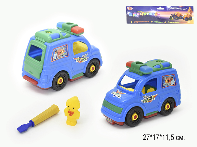 Машина констр. арт. 1227" Полиция в пак.Соединить детали при помощи пластиковых болтов, используя инструменты - задача интересная и не сложная.