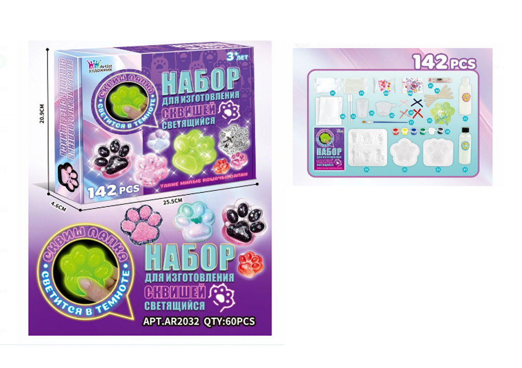 Антистресс арт. AR2032 Набор "Сделай лапку сам" 142 предм. свет. в кор._