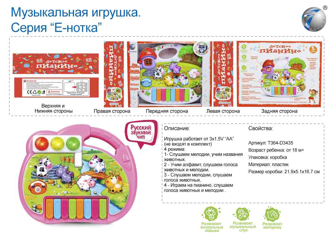 - Рыба арт. 7385 Развивающая игрушка в кор.×Рыба арт. 7385 Развивающая игрушка в кор.Развивающая игрушка с музыкой и световыми эффектами «Рыбка» поможет малышу в легкой игровой форме запомнить названия морских обитателей, их особенности, узнать интересные факты о морях, поиграть в забавную викторину и прослушать веселые мелодии.