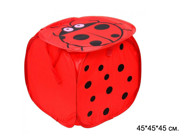 Корзина для игрушек арт. 3612-7 Божья коровка)Для удобства есть 2 ручки, за которые можно подвесить корзину или переместить её с места на место. Корзина сделана из нейлона, очень прочный и яркий материал. Легко складывается. Крышка крепиться на липучке.