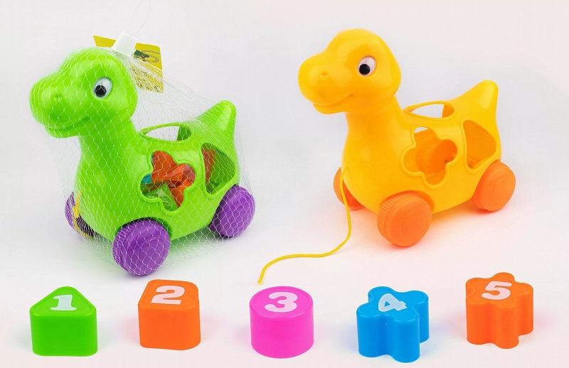 Каталка-сортер арт. 2324 Дино цвета микс на веревочке в сетке 22*12*20