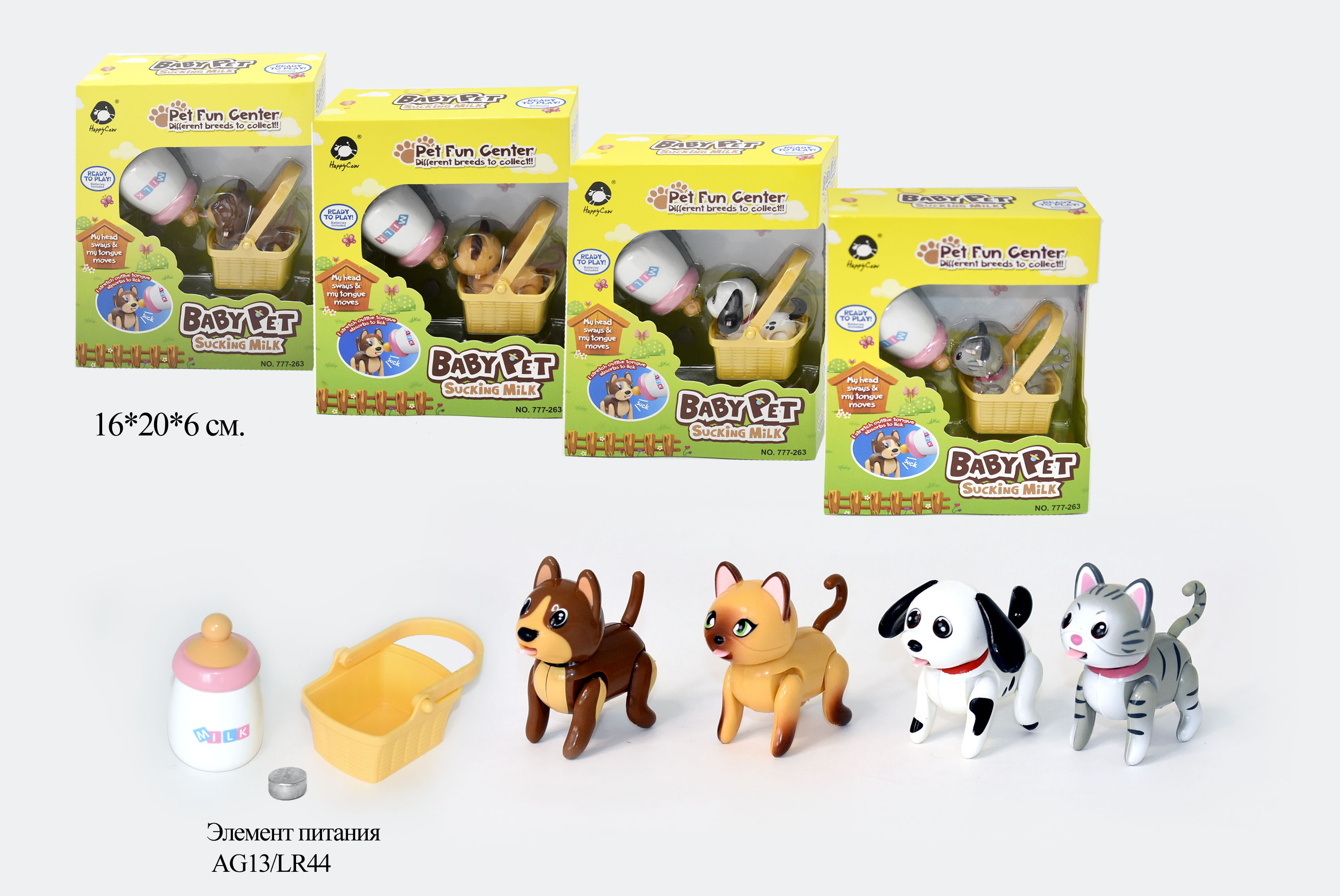 Котенок арт. 777-263" На бат., лижет соску, в коробке 16 х 20 х 6 /48шт.//бл.24/