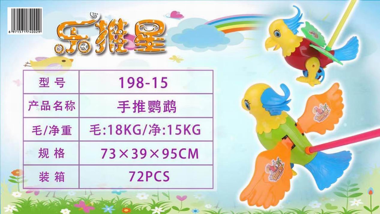 Каталка арт. 198-15 Попугай с ручкой в пак. 25*35*46