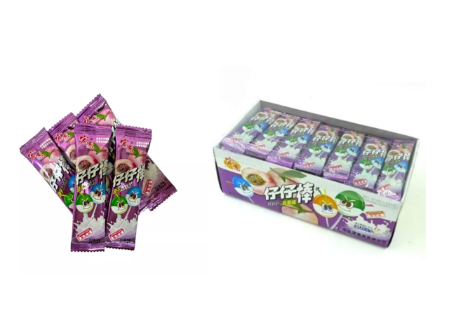 Конфета арт. 002138-8 Карамель на палочке "Персик со сливками" 320 г в фиолетовой кор.'*
