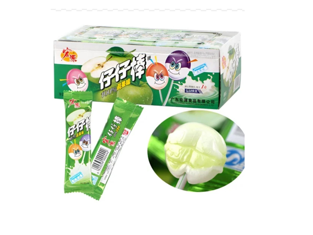 Конфета арт. 002138-7 Карамель на палочке "Яблоко со сливками" 320 г в кор.'*