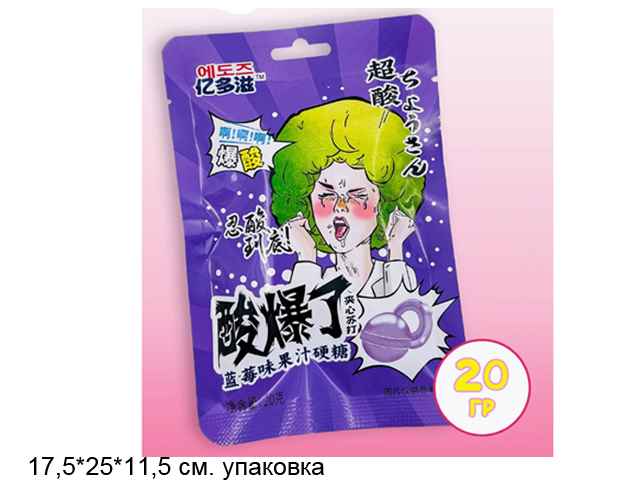 Конфета арт. 101692/79793 Кислая "Зомби" Черника 20 г в пак. 20 шт. в кор.#'*