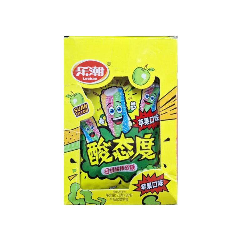 Конфета арт. 124948/124887 Кислая Трубочка-тянучка с начинкой "Яблоко" 23 г 20 шт. в кор.#
