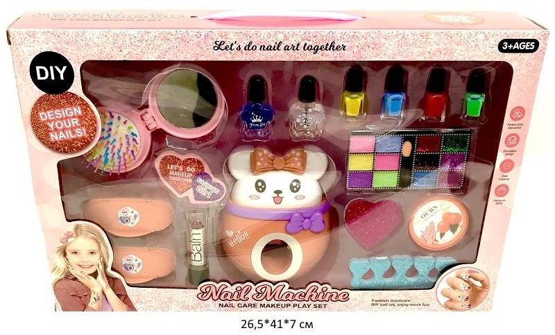 Набор включает все необходимое, чтобы быстро привести ручки в порядок и создать стильный дизайн. В косметический набор входит аппарат для нанесения дизайна, палетка теней0 помада, расчетска и разноцветные лаки.