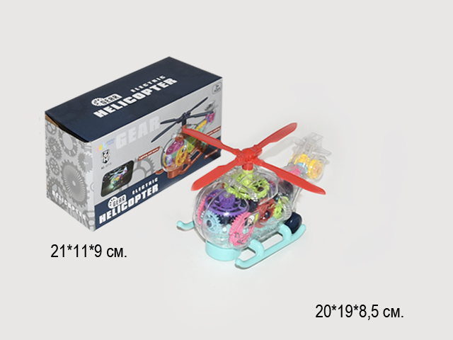 Вертолет арт. 0713 Шестеренки на батар. в кор._/72 шт./Вертолёт самодвижущийся, при возникновении препятствий, автоматически поворачивает в другую сторону. Работает от 3 батареек типа АА (в комплект не входят).