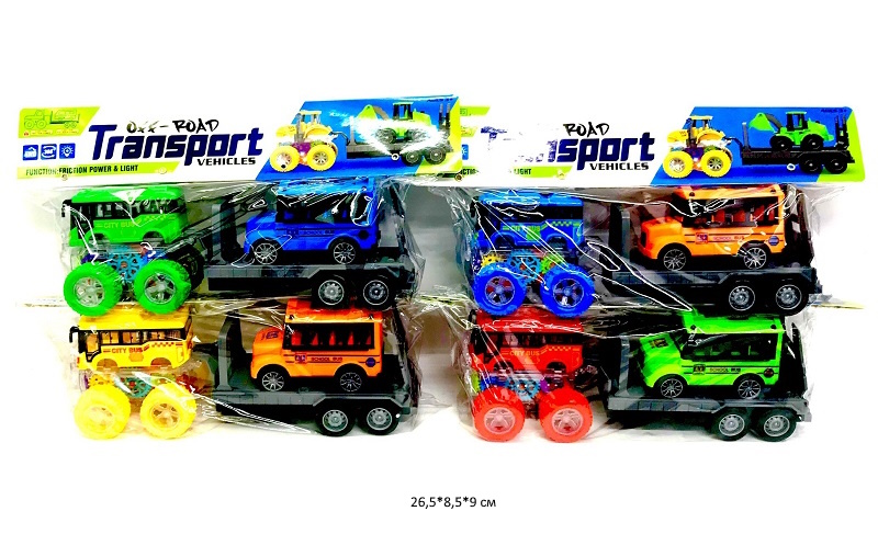 Автобус арт. YM-1114G1 Инерц. со школьн. автобусом в прицепе свет, шестеренки в пак._