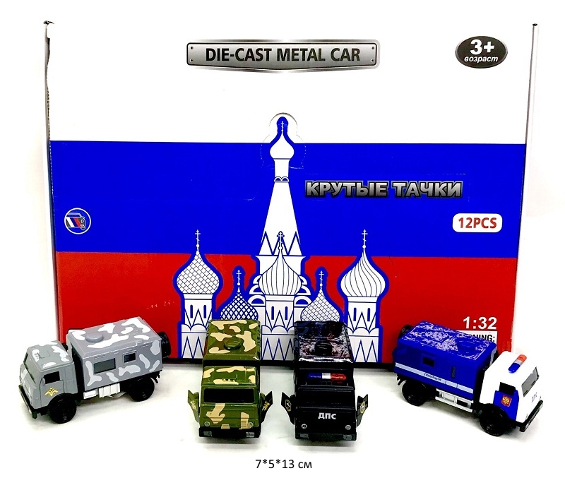 Модель металл. арт. TCC1825-12D Грузовик военный, ДПС, Полиция (12 шт.) шоубокс_/18 шт./