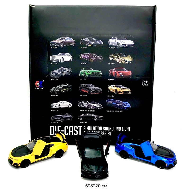 Модель металл. арт. CZ126A/127A Спорткар цвета микс инерц. свет, звук (8 шт.) шоубокс_