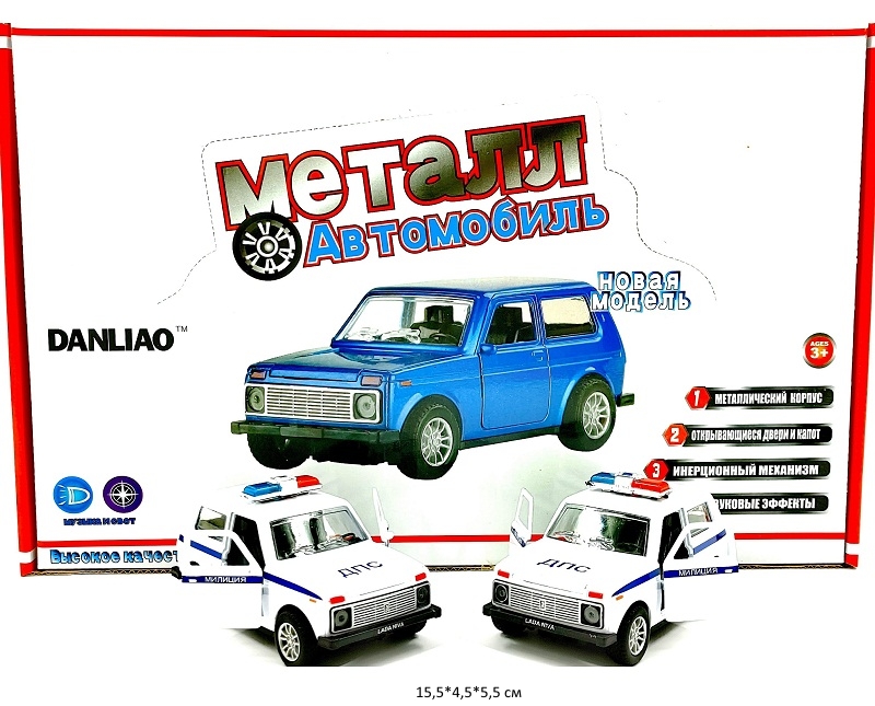 Модель металл. арт. 1801PD ВАЗ Джип ДПС инерц. свет, звук (12 шт.) шоубокс_