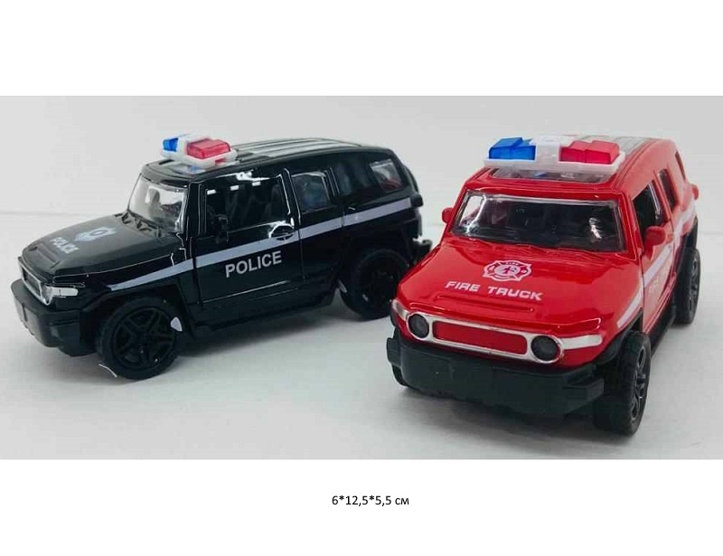 Модель металл. арт. ZY345505 Джип Полиция, Пожарная (12 шт.) шоубокс~