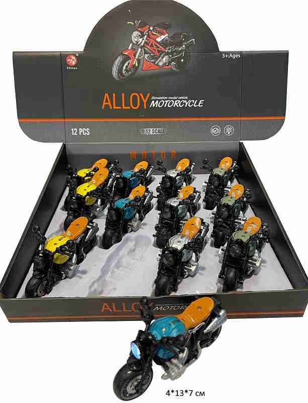 Модель металл. арт. 7602 Мотоцикл цвета микс свет, звук (12 шт.) шоубокс•
