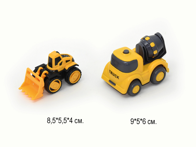 Бетономешалка арт. 709-168-1" Инерц. набор 2шт в пакете 10*10*6Яркий набор строительной техники понравится любому мальчику. Машинки оснащены подвижными элементами. Благодаря таким игрушкам ребенок будет с удовольствием развивать мелкую моторику рук, координацию движений, зрительное восприятие, воображение. Благодаря небольшому размеру, машинки удобно держать мленькой ручкой.