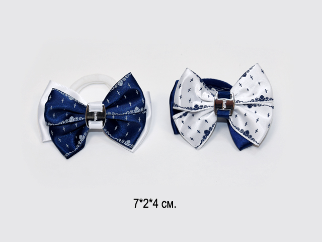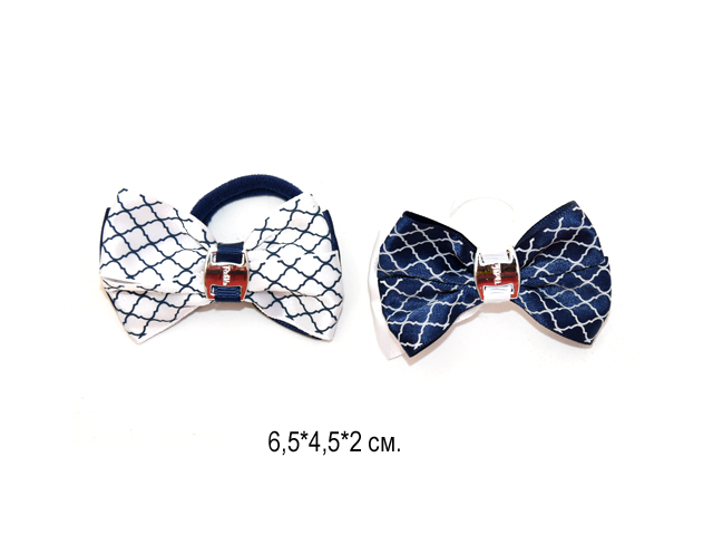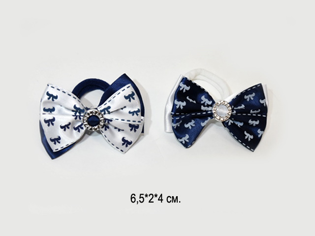 Бант арт. 709-B01-4 Двухцветный рисунок мелкий серебро на резинке 2 вида (24 шт.) на листе