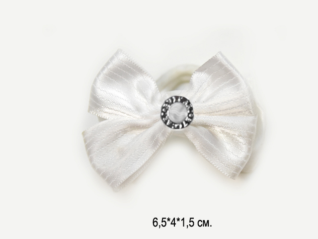 Бант арт. KP-5768-1 Белый шелковый с тонкой лентой на резинке (24 шт.) на листе