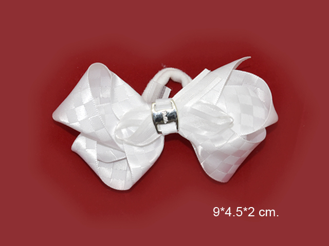 Бант арт. 552-6/W02 Белый шелковый клетка на резинке (12 шт.) на листе