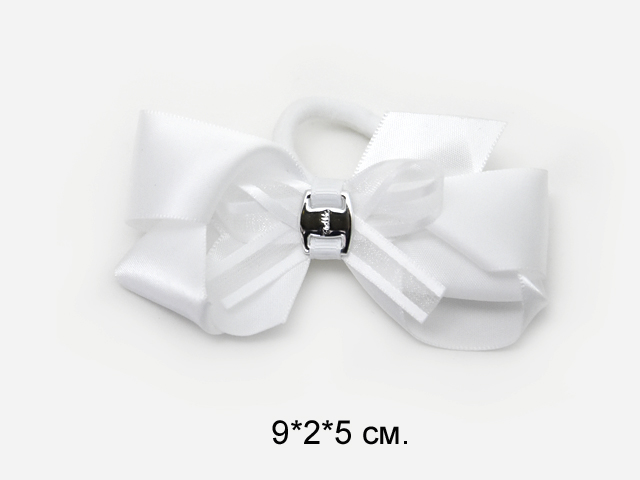 Бант арт. 552-5/KP-5769-1 Белый с серебром на резинке (24 шт.) на листе