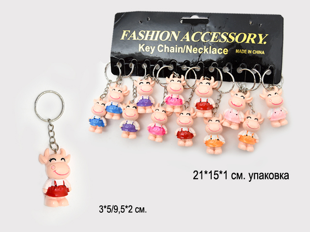 Брелок арт. 005 Коровка в сарафанчике 12 шт. в пак.Брелоки облегчают бытовые проблемы, украшают интерьер, помогают радовать близких и многое другое. Они хороши тем, что у них есть удобное крепление. Фигурка украсит ключи, сумку или интерьер, будет радовать глаз и станет отличительной чертой любого предмета. Яркий брелок станет прекрасным дополнением к подарку или приятным сувениром.
